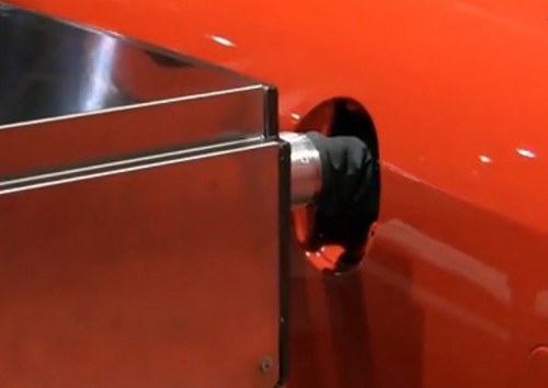 當車輛停產靠在加油樁一側,機器人會利用紅外線自動鎖定油箱蓋,然后用吸盤將其打開。然后三個加油槍中的一根會自動插入到油箱口。當然前提是這輛車的油箱口沒有蓋(現在越來越多的車都沒有油箱蓋)。